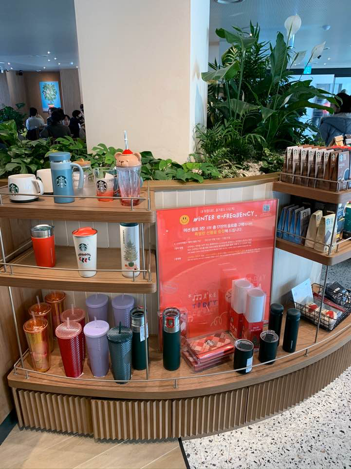 새 매장 인테리어라서 그런지 구석구석이 예뻤어요. 또 머신들도 다 새거고, 특히 스타벅스에서 저 디지털 메뉴보드를 보는 것은 개인적으로 망원한강공원점이 처음이라서 정말 신기했습니다. 또 바 옆에는 다른 일반 매장과 다르게 몇몇 특별 매장에서만 즐길 수 있는 빵들 (크루아상 등)을 팔고 있었어요. 크루아상이 정말 커서 놀랐습니다😆