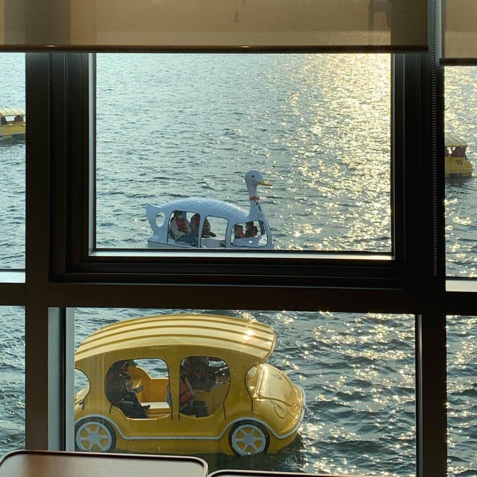 먼저 한강뷰 존에서는 이렇게 바로 앞에 아름다운 한강의 물결을 보면서 커피를 마실 수 있습니다. 제일 자리 경쟁이 치열한 곳이기도 합니다. 특히 노을질 무렵에는 이렇게 한강의 윤슬을 볼 수 있고, 노을도 감상할 수 있어서 로맨틱한 자리가 아닐까 싶어요 :)