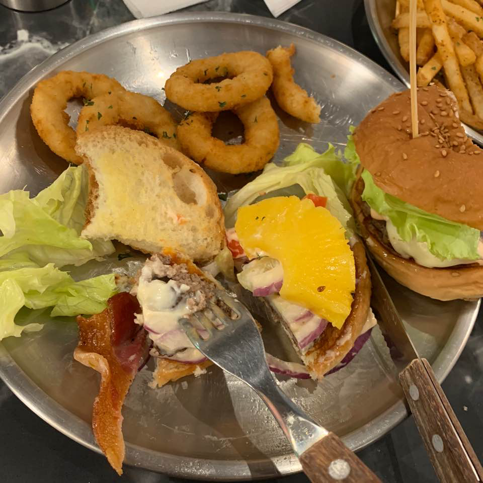 가격도 청담임에도 불구하고 합리적이라고 생각했어요. 양도 은근 많이 주셔서 아주 배부르게 먹을 수 있었습니다. 제가 주문한 피나콜라다 버거는 안에 파인애플이 들어가 있는 버거예요. 여기에 스페셜 파인애플 소스, 체다치즈, 베이컨, 100% 소고기 패티 등이 아주 맛있는 조합으로 올라가 있었습니다. 자칫 물릴 수 있는 버거에 파인애플이 들어가서 더욱 맛있게 먹을 수 있었어요! 그리고 어니언링도 아주 겉바속촉에 맛있는 사이드여서 매우 만족했습니다. 개인적으로 셰이크쉑 버거처럼 좀 촉촉한 번을 좋아하는데 로칼즈버거바는 그런 번은 아니었어서 참고해주시면 될 것 같아요!