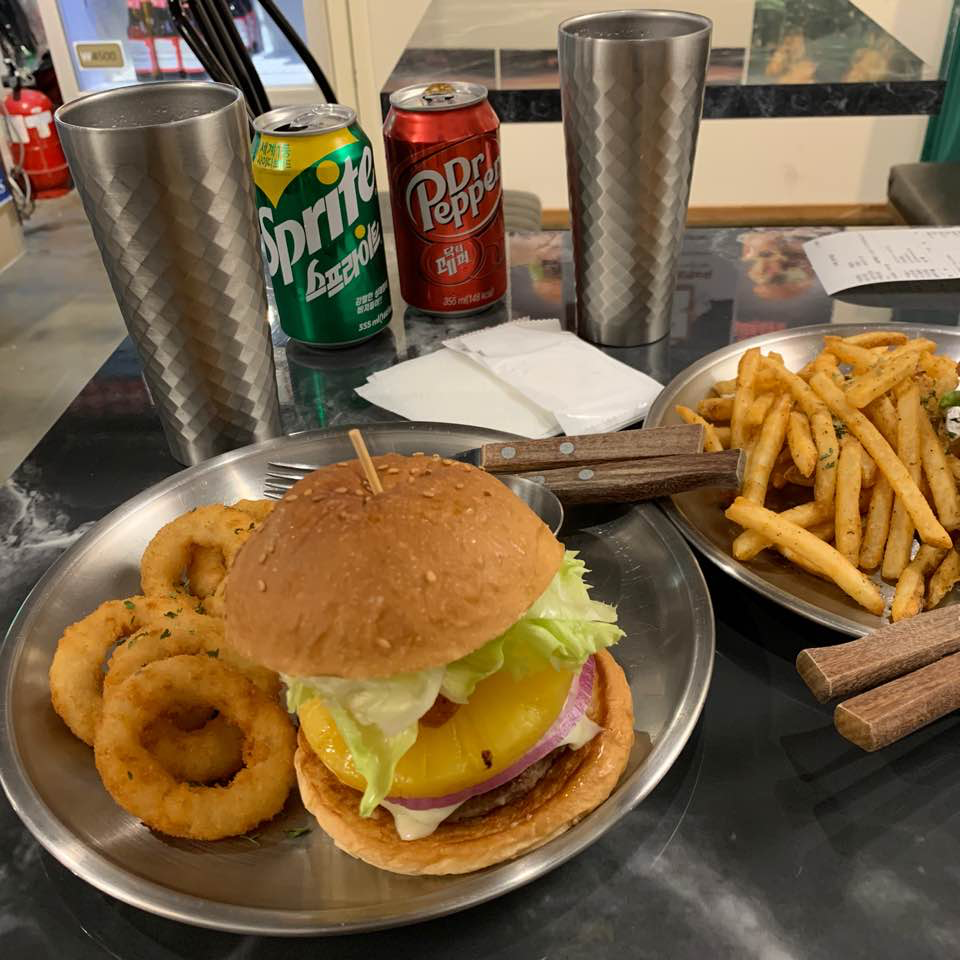 친구와 음료를 마시면서 먼저 얘기하고 있다보니 주문한 음식이 나왔습니다. 개인적으로 밀크셰이크에 감자튀김을 찍어먹는 것을 좋아하는데 아쉽게도 요즘에는 밀크셰이크는 하지 않으신다고 합니다ㅠㅠ